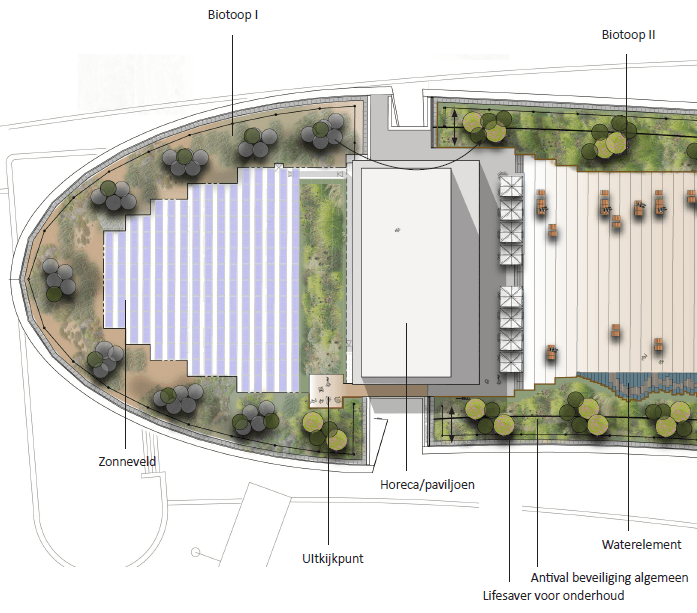 met daarin een uitsparing voor een grote retentievijver.